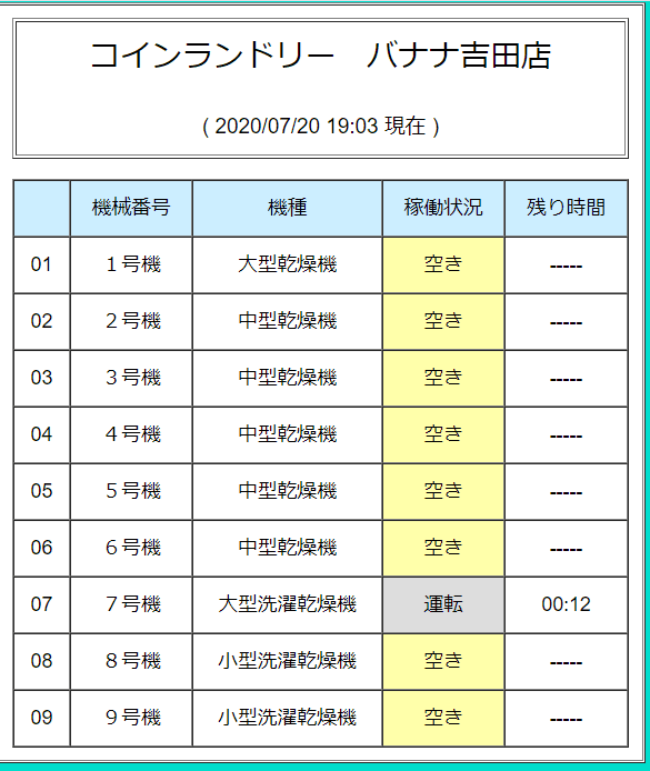 2020年7月20日 お知らせ吉田川尻店の稼働状況をWEBで確認できるようになりました! 吉田川尻店もしくはhttps://eishunsya.com/kadou/から、現在の稼働状況をご確認いただけるようになりました。3分程度の間隔で情報を更新しております。是非ご利用ください! « 吉田川尻店開店のお知らせ吉田川尻店ワックスがけ日程変更のお知らせ »